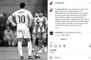 体育资讯04月17日讯 皇马在欧冠1/4决赛被拜仁淘汰,姆巴佩赛后发表社媒。