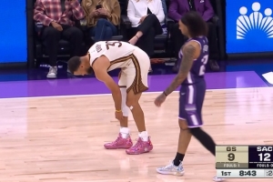 GIF-库里有点崴脚
