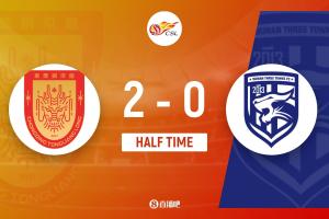伤停补时3分钟,上半场结束,重庆铜梁龙2-0武汉三镇。